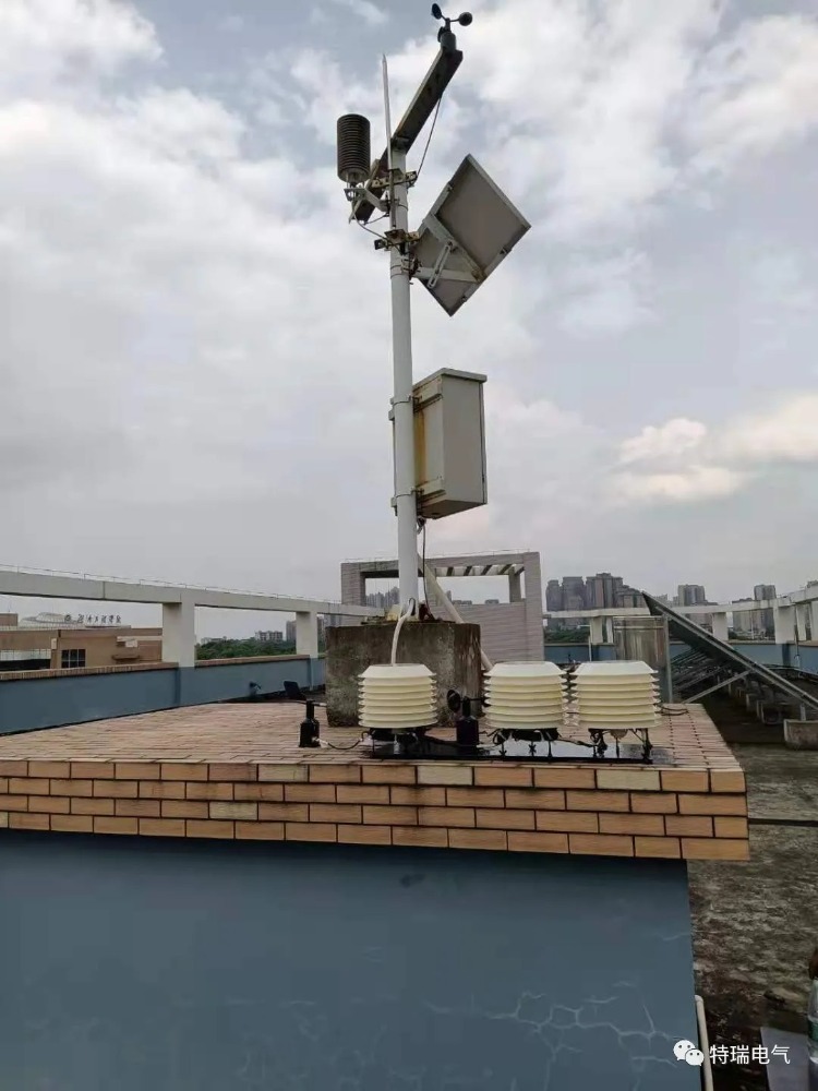 风速传感器、风向传感器、空气温湿度、PM2.5、PM10传感器安装于湖南工程学院南南北区实验室大楼楼顶。通过5G工业网关采集环境数据。